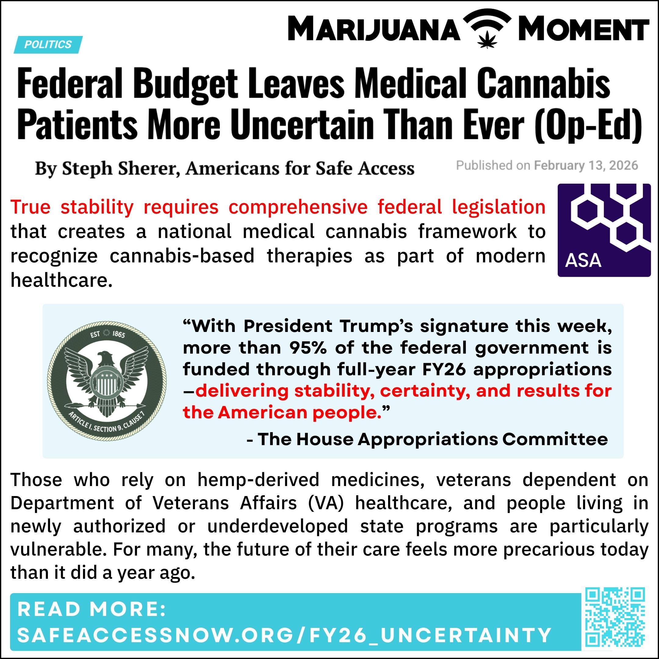 Announcement Launches ASA’s Compassionate Candidate Campaign Washington, DC / Lincoln, NE —…Federal Budget Leaves Medical Cannabis Patients More Uncertain Than Ever (Op-Ed)
